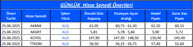 Günlük Hisse Senedi Önerileri