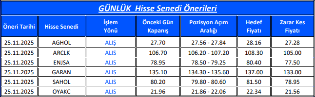 ➢ Önerilerin geçerlilik süresi raporda verilen tarihle sınırlıdır. Verilen tarih içinde hedef ve stop seviyesine ulaşmayan hisseler öneri bitiş tarihindeki kapanış fiyatından kapatılmış sayılır ve bunlar için ek bir bildirim yapılmaz.