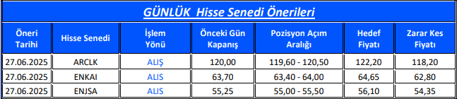 ➢ Önerilerin geçerlilik süresi raporda verilen tarihle sınırlıdır. Verilen tarih içinde hedef ve stop seviyesine ulaşmayan hisseler öneri bitiş tarihindeki kapanış fiyatından kapatılmış sayılır ve bunlar için ek bir bildirim yapılmaz.