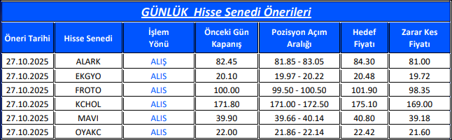 Gedik Yatırım Günlük Hisse Önerileri – (27.10.2025)