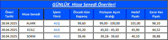 Gedik Yatırım Günlük Hisse Önerileri – (28.04.2025)
