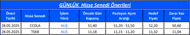 ➢ Önerilerin geçerlilik süresi raporda verilen tarihle sınırlıdır. Verilen tarih içinde hedef ve stop seviyesine ulaşmayan hisseler öneri bitiş tarihindeki kapanış fiyatından kapatılmış sayılır ve bunlar için ek bir bildirim yapılmaz.