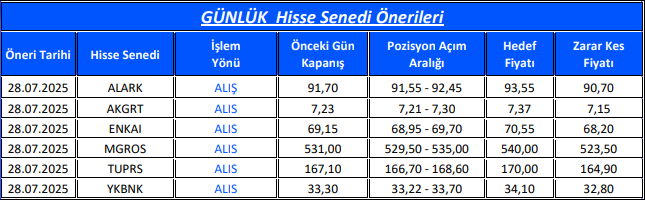 ➢ Önerilerin geçerlilik süresi raporda verilen tarihle sınırlıdır. Verilen tarih içinde hedef ve stop seviyesine ulaşmayan hisseler öneri bitiş tarihindeki kapanış fiyatından kapatılmış sayılır ve bunlar için ek bir bildirim yapılmaz.