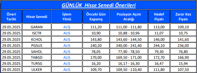 Kaynak: Gedik Yatırım Günlük Öneri Raporu