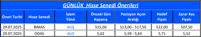 Gedik Yatırım Günlük Hisse Önerileri – (29.07.2025)