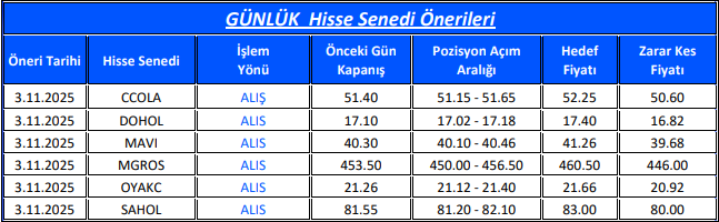 Gedik Yatırım Günlük Hisse Önerileri – (3.11.2025)