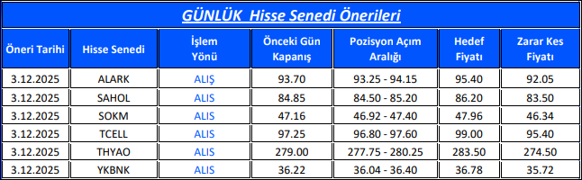 Gedik Yatırım Günlük Hisse Önerileri – (3.12.2025)