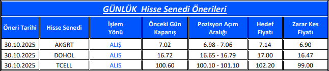 Gedik Yatırım Günlük Hisse Önerileri – (30.10.2025)