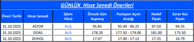 Günlük Hisse Senedi Önerileri