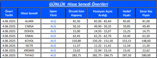 ➢ Önerilerin geçerlilik süresi raporda verilen tarihle sınırlıdır. Verilen tarih içinde hedef ve stop seviyesine ulaşmayan hisseler öneri bitiş tarihindeki kapanış fiyatından kapatılmış sayılır ve bunlar için ek bir bildirim yapılmaz.