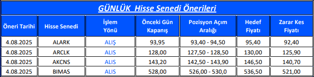 Günlük Hisse Senedi Önerileri
