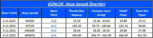 Günlük Hisse Senedi Önerileri