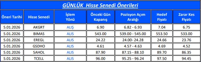 Kaynak: Gedik Yatırım Günlük Öneri Raporu