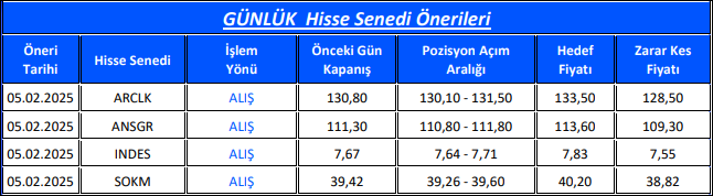 Günlük Hisse Senedi Önerileri