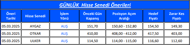 Günlük Hisse Senedi Önerileri