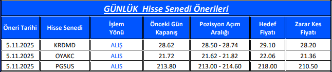 Günlük Hisse Senedi Önerileri