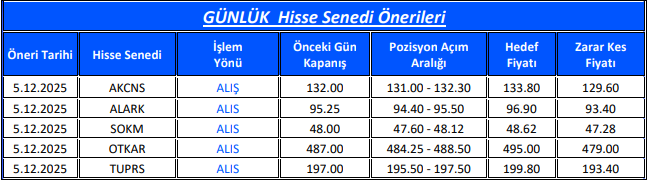 Kaynak: Gedik Yatırım Günlük Öneri Raporu