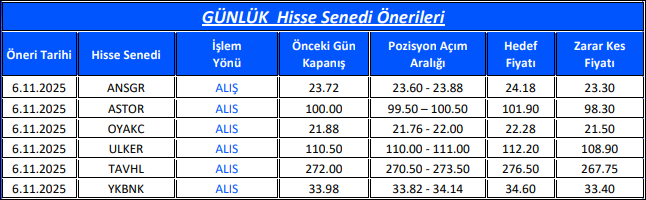➢ Önerilerin geçerlilik süresi raporda verilen tarihle sınırlıdır. Verilen tarih içinde hedef ve stop seviyesine ulaşmayan hisseler öneri bitiş tarihindeki kapanış fiyatından kapatılmış sayılır ve bunlar için ek bir bildirim yapılmaz.