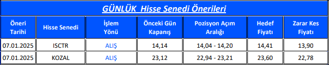 Gedik Yatırım Günlük Hisse Önerileri – (7.01.2025)