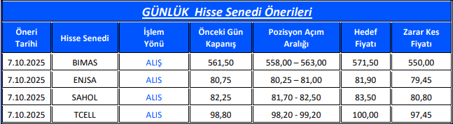 Kaynak: Gedik Yatırım Günlük Öneri Raporu