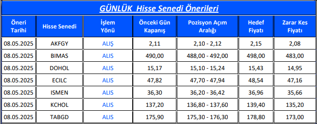 Günlük Hisse Senedi Önerileri