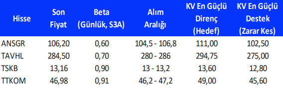 Bu hafta teknik takibimizdeki hisseler: ANSGR, TAVHL, TSKB, TTKOM