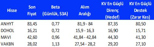 Bu hafta teknik takibimizdeki hisseler: ANHYT, DOHOL, MAVI, VAKBN