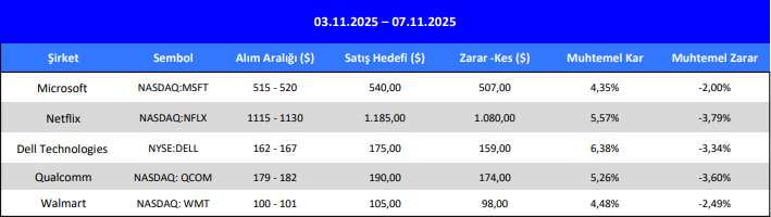 Qualcomm (QCOM), yarı iletken üretimi ve kablosuz iletişim teknolojileri alanında faaliyet gösteren önde gelen bir teknoloji şirketidir. Qualcomm (QCOM), 5 Kasım’da açıklayacağı dördüncü çeyrek sonuçlarında 10,3–11,1 milyar dolar gelir ve 2,75–2,95 dolar arası hisse başına kâr (EPS) öngörüyor. Şirketin güçlü yönü, yeni yapay zekâ veri merkezi çipleriyle artan talep ve IoT ile otomotiv segmentlerindeki büyüme potansiyeli olarak öne çıkıyor. Akıllı telefon satışlarının özellikle Çin pazarında nasıl seyrettiği bu çeyrekte önemle takip edilecek. Teknik olarak ise, hisse son dönemde güçlü bir yükseliş ivmesi yakaladıktan sonra kâr realizasyonuyla hafif geri çekilmiş durumda. Fiyat, 20 günlük ortalamanın üzerinde tutunmaya devam ederken Bollinger bantlarının üst kısmında dalgalanıyor. RSI göstergesi 60 seviyesinde dengede seyrediyor, MACD ise pozitif bölgede kalmaya devam ederek yükseliş trendinin halen geçerli olduğunu gösteriyor.