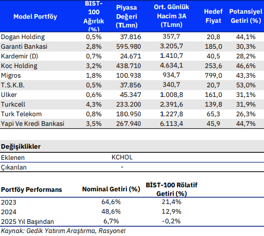 Kaynak: Gedik Yatırım Model Portföy