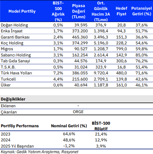Kaynak: Gedik Yatırım Model Portföy