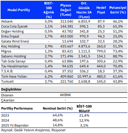 Gedik Yatırım Model Portföy Önerileri – (27.10.2025)