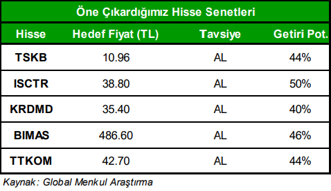 • 2024 yılının ilk yarısı için en beğendiğimiz şirketler: TSKB, ISCTR, KRDMD, BIMAS ve TTKOM olarak sıralanabilir.