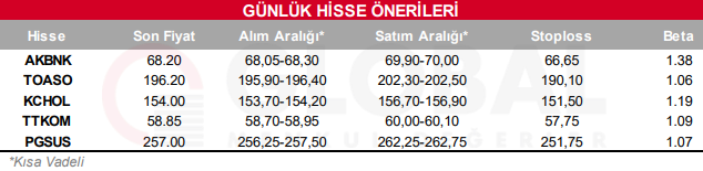 Bugün hareketli olmasını beklediğimiz hisseler: AKBNK-TOASO-KCHOL-TTKOM-PGSUS