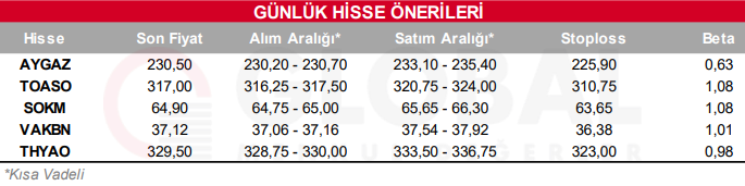 Gün içerisinde hareketli olmasını beklediğimiz hisseler;