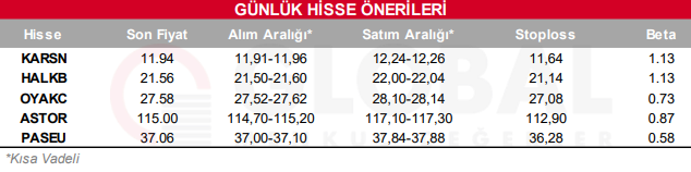 Bugün hareketli olmasını beklediğimiz hisseler: KARSN, HALKB, OYAKC, ASTOR, PASEU.