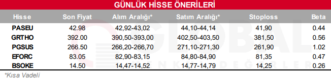 Bugün hareketli olmasını beklediğimiz hisseler: PASEU, GRTHO, PGSUS, EFORC, BSOKE.
