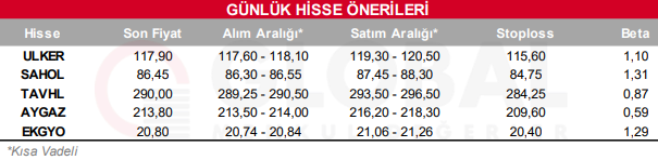 Bugün hareketli olmasını beklediğimiz hisseler: ULKER, SAHOL, TAVHL, AYGAZ, EKGYO