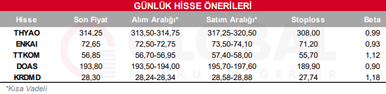 Bugün hareketli olmasını beklediğimiz hisseler: THYAO-ENKAI-TTKOM-DOAS-KRDMD