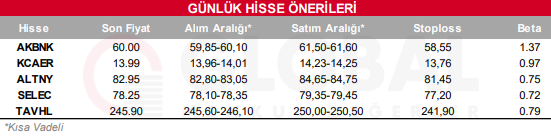 Bugün hareketli olmasını beklediğimiz hisseler: AKBNK-KCAER-ALTNY-SELEC-TAVHL