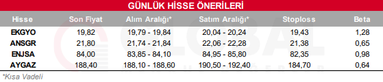 Bugün hareketli olmasını beklediğimiz hisseler: EKGYO, ANSGR, ENJSA, AYGAZ
