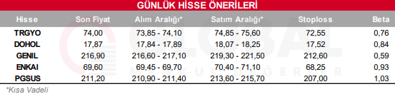 Günlük Hisse Önerileri