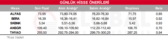 Bugün hareketli olmasını beklediğimiz hisseler: ALFAS, BERA, SKBNK, ANSGR, THYAO.