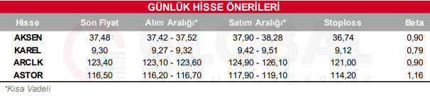 Bugün hareketli olmasını beklediğimiz hisseler: AKSEN-KAREL-ARCLK-ASTOR
