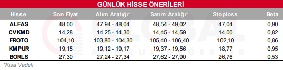 Bugün hareketli olmasını beklediğimiz hisseler: ALFAS-CVKMD-FROTO-KMPUR-BORLS