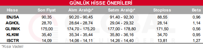 Bugün hareketli olmasını beklediğimiz hisseler: ENJSA, AGHOL, GLRMK, KLKIM, ISCTR