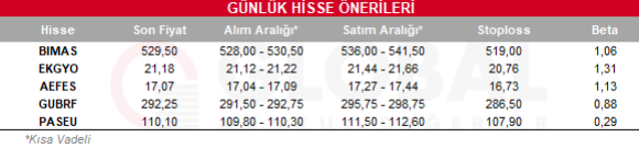 Bugün hareketli olmasını beklediğimiz hisseler: BIMAS-EKGYO-GUBRF-AEFES-PASEU