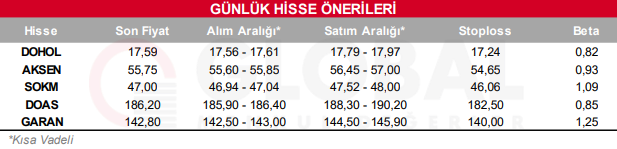 Bugün hareketli olmasını beklediğimiz hisseler: DOHOL, AKSEN, SOKM, DOAS, GARAN