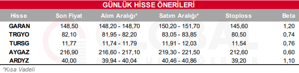 Bugün hareketli olmasını beklediğimiz hisseler: GARAN, TRGYO, TURSG, AYGAZ, ARDYZ