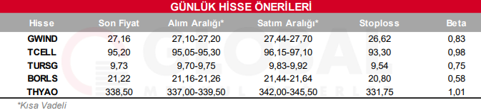 Bugün hareketli olmasını beklediğimiz hisseler: GWIND-TCELL-TURSG-BORLS-THYAO
