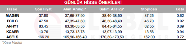 Bugün hareketli olmasını beklediğimiz hisseler: MAGEN-ECILC-ANHYT-KCAER-ASELS